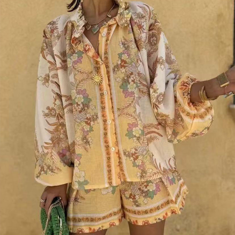 Package Included: 1 * Women’s Vintage Floral Print Top & Shorts Two-Piece Set