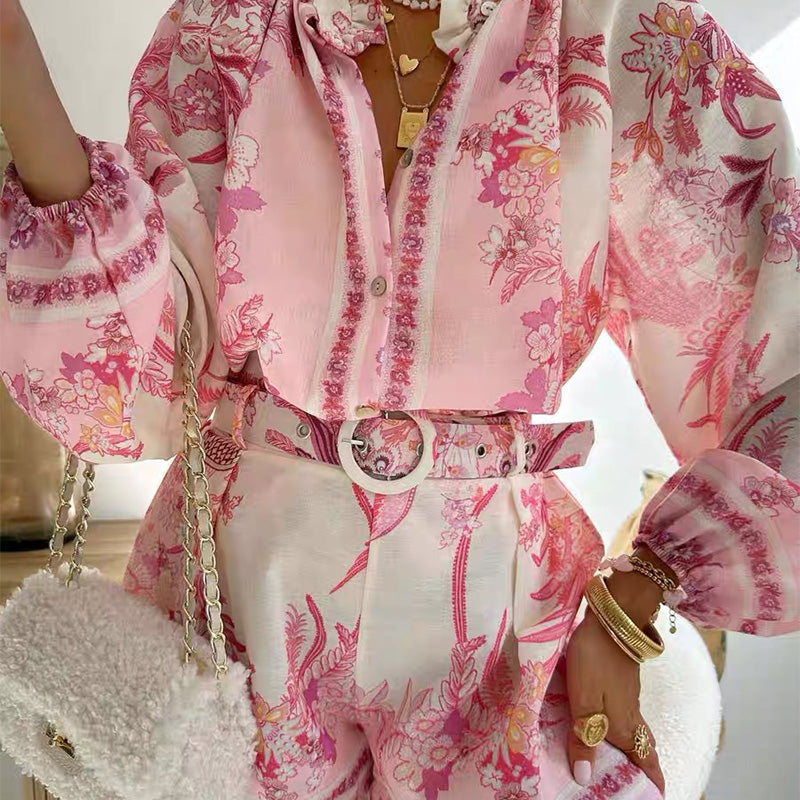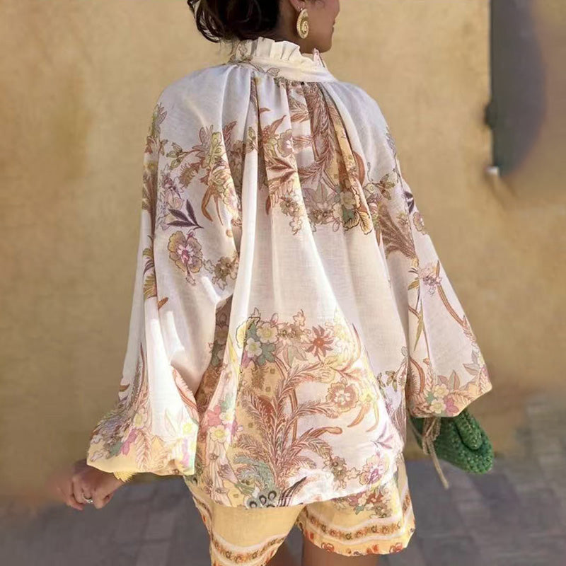 Women’s Vintage Floral Print Top & Shorts Two-Piece Set