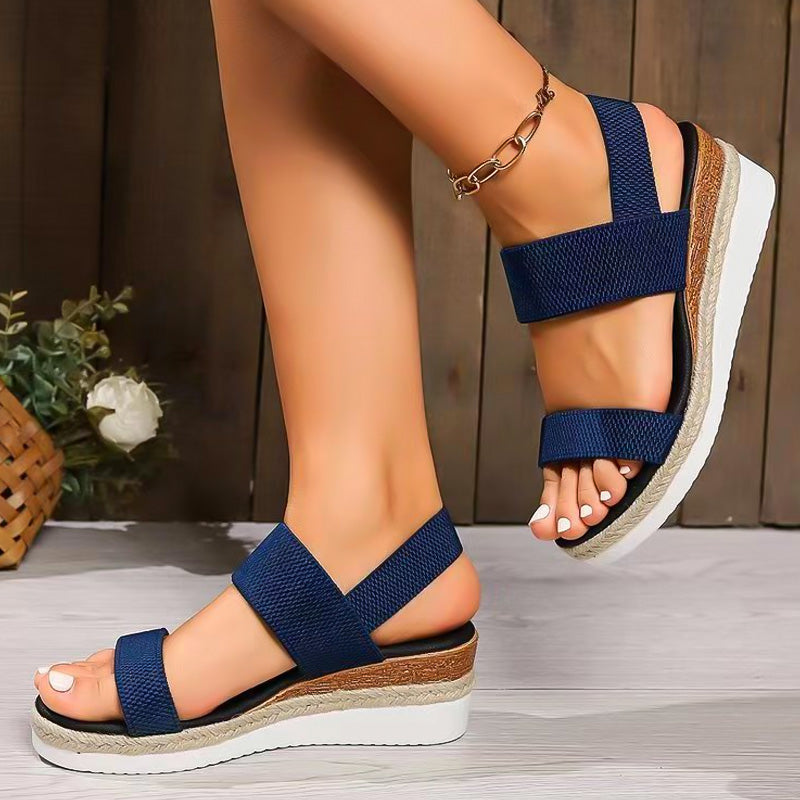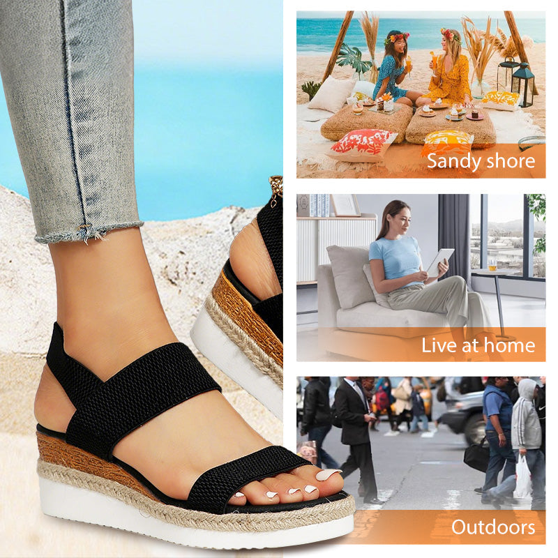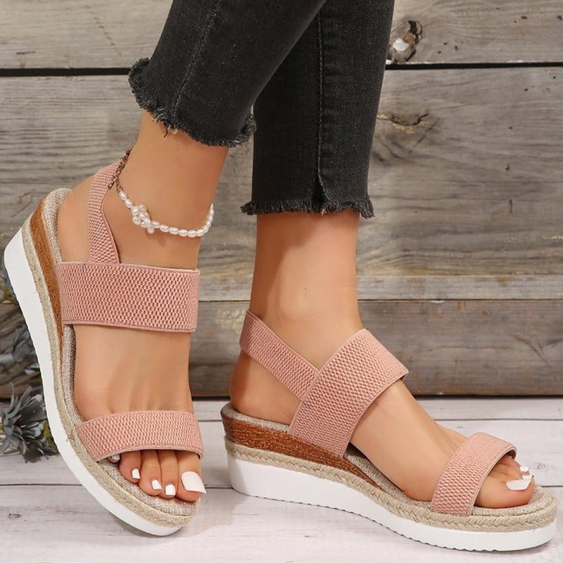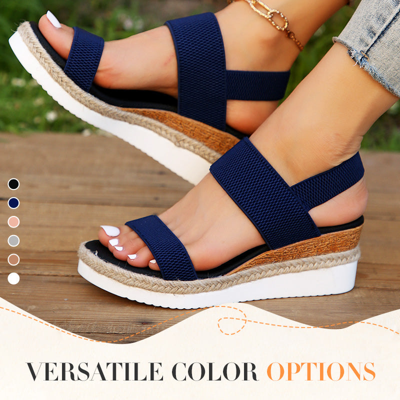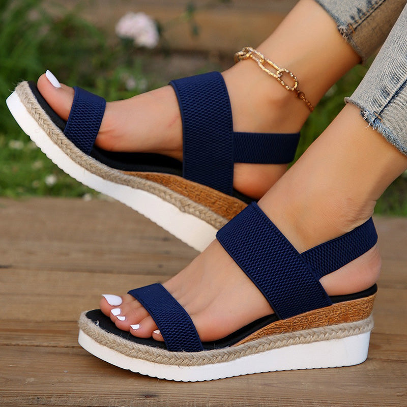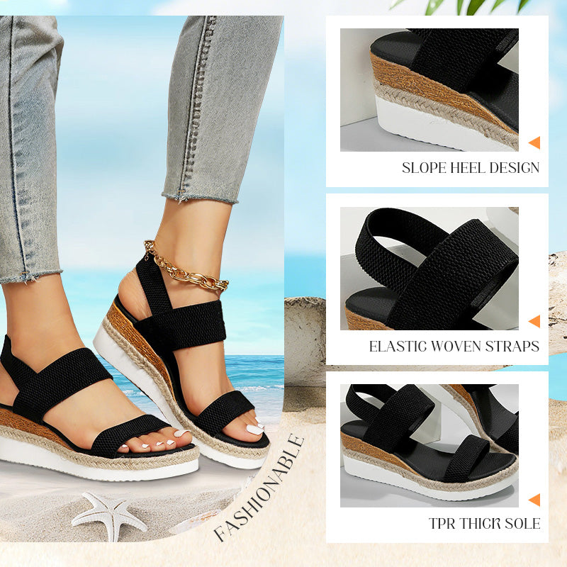 1 x Women's Woven Elastic Strap Thick Bottom Slope Heel Sandals