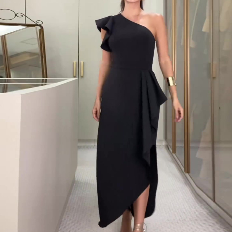⏰Limited Time Half Price -50% OFF 🔥Asymmetrical One Shoulder Ruffle Dress with Irregular Hem and Fitted Waist