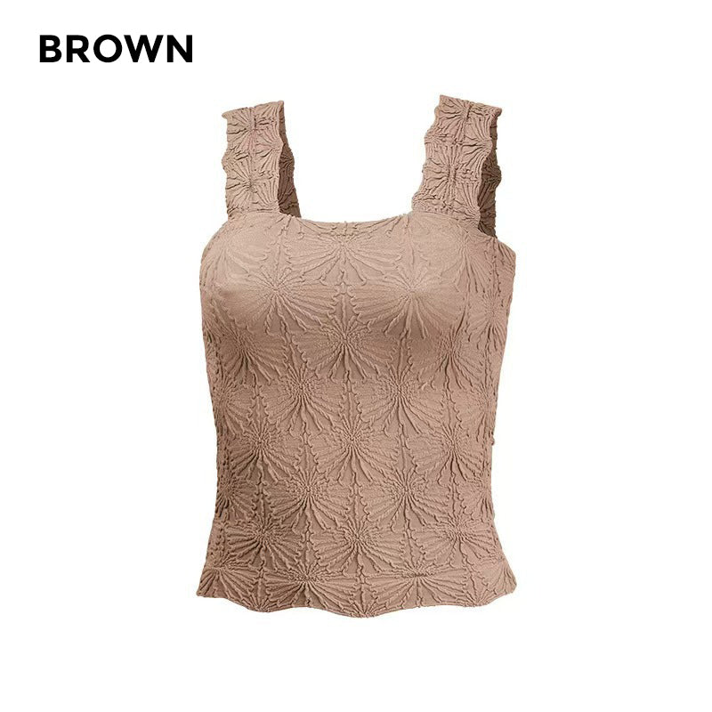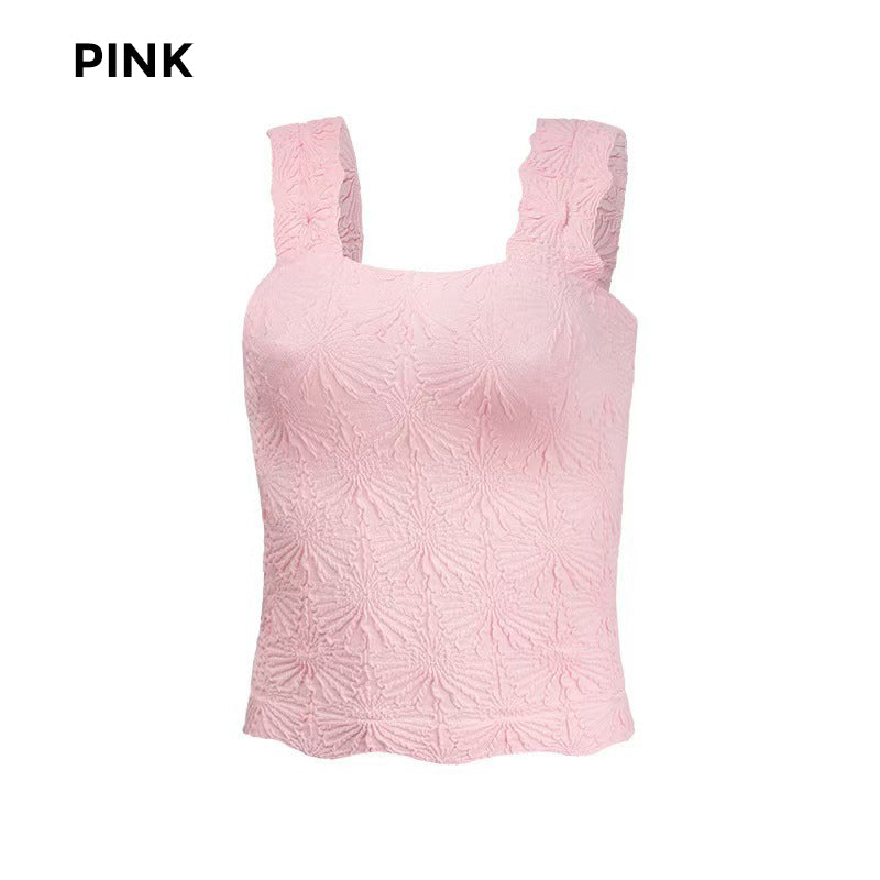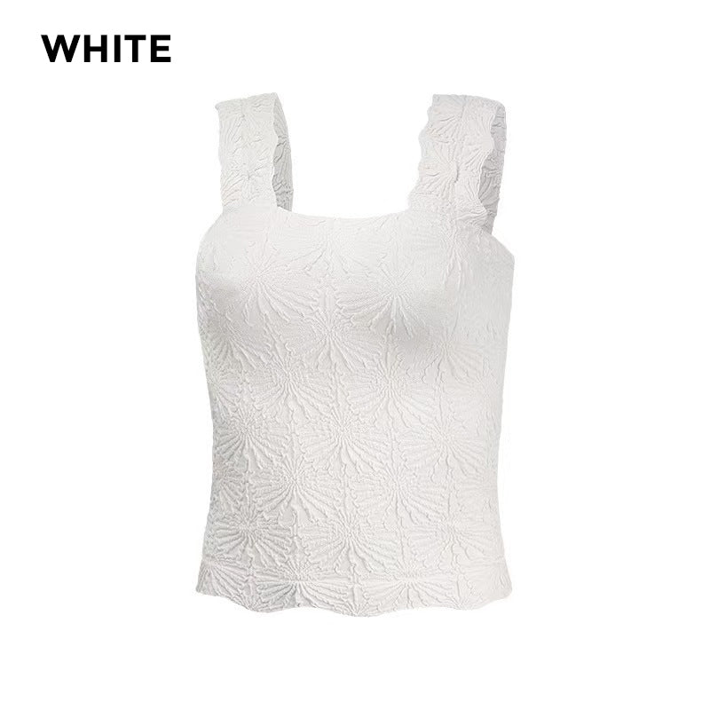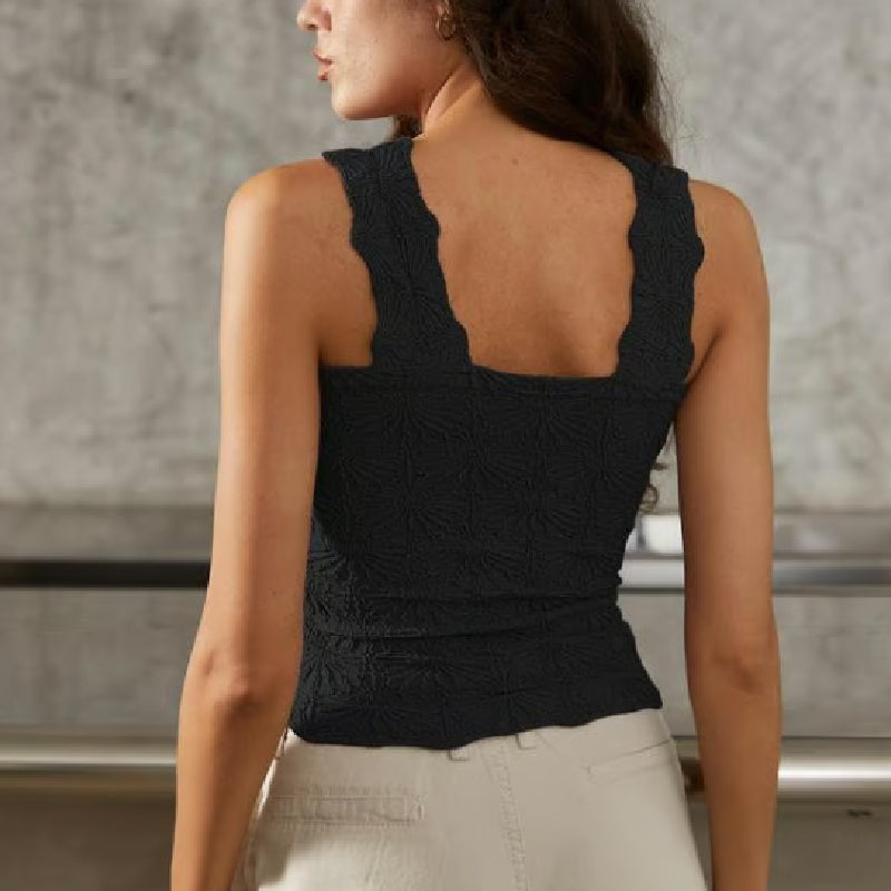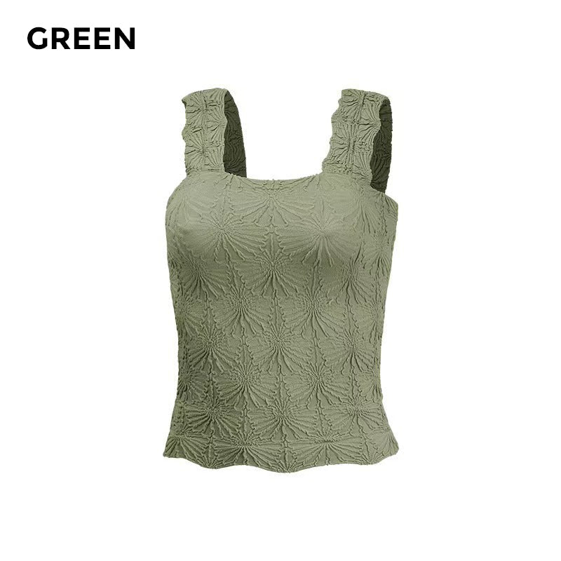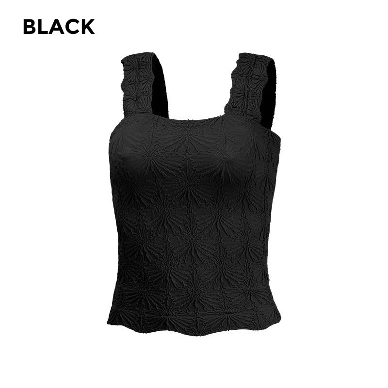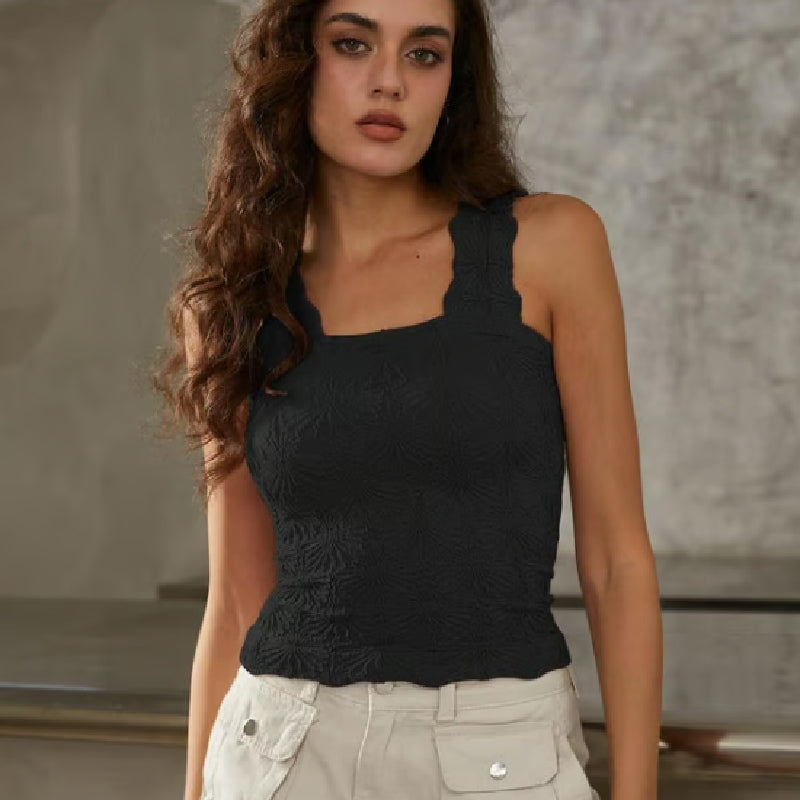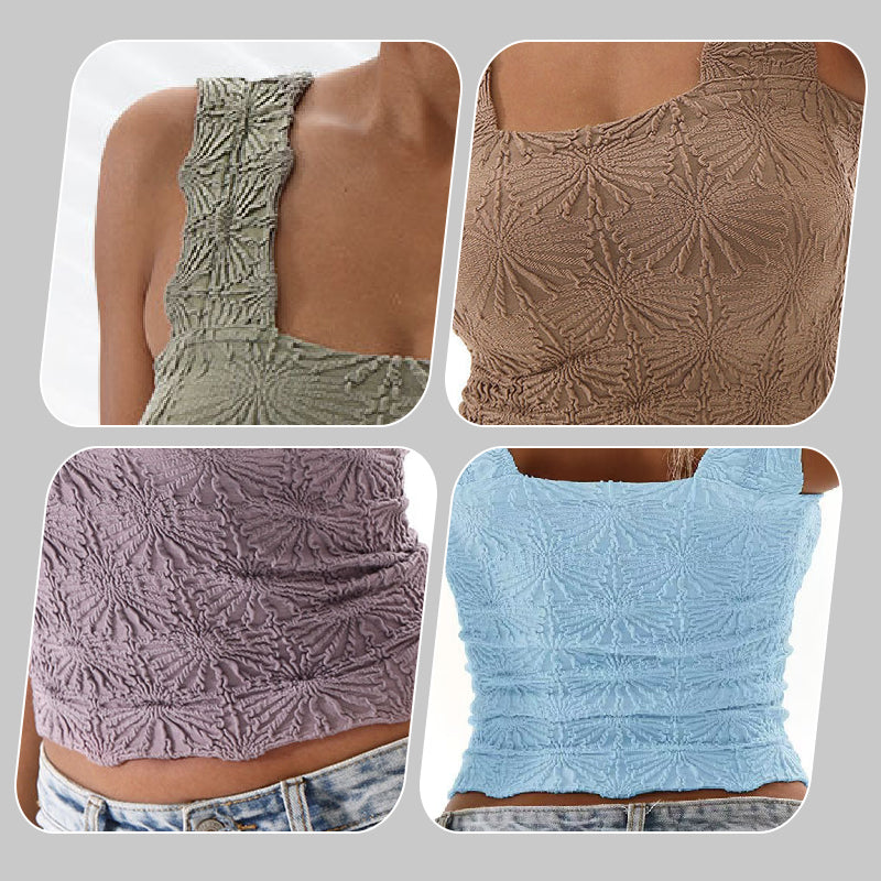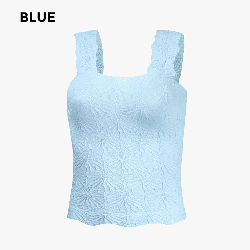 🎁50% OFF!🎁🌸 Women's Wide Strap Square Neck Short Flower Sports Tank Top – Comfort Meets Style! ✨
